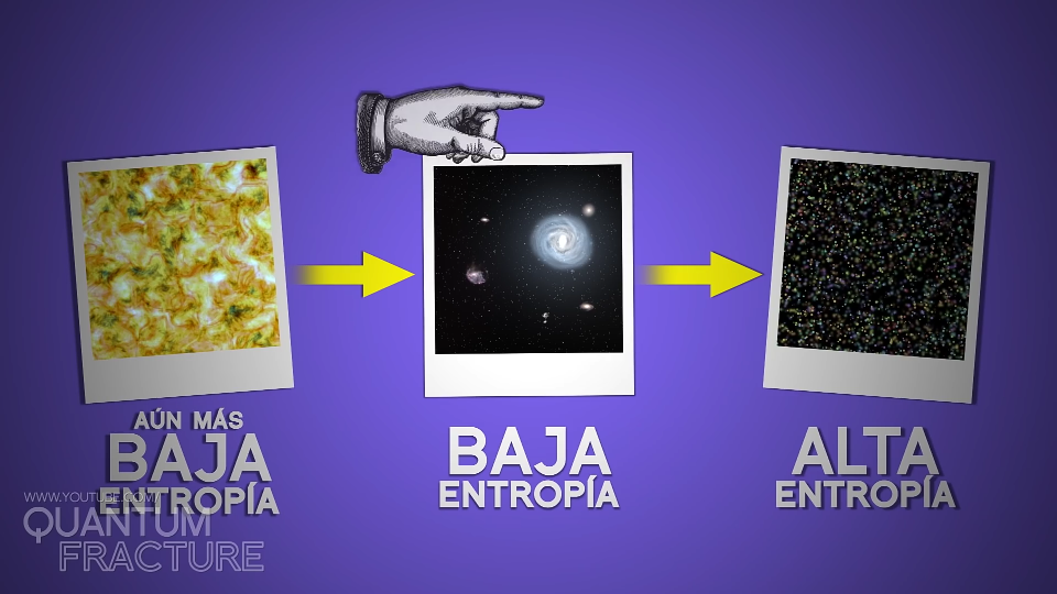 Pues eso precisamente hizo pensar a Boltzmann en lo siguiente, si el universo que existe actualmente ya está ordenado, es decir, ya es de baja entropía, quiere decir que en sus inicios este universo tuvo que comenzar en un estado de aún más baja entropía.